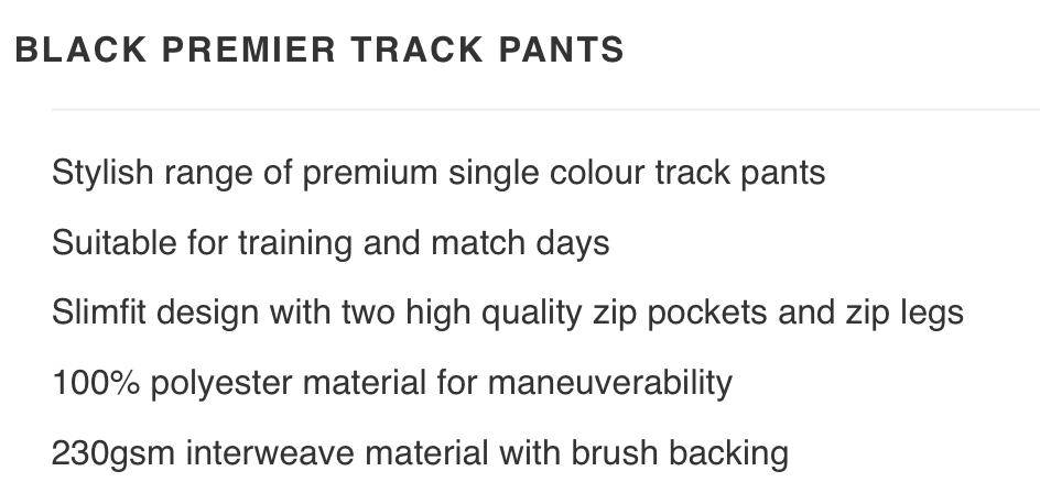 SOUTHS NEWCASTLE WOMENS HOCKEY CLUB PREMIER UNISEX BLACK TRACK / TRAINING PANT